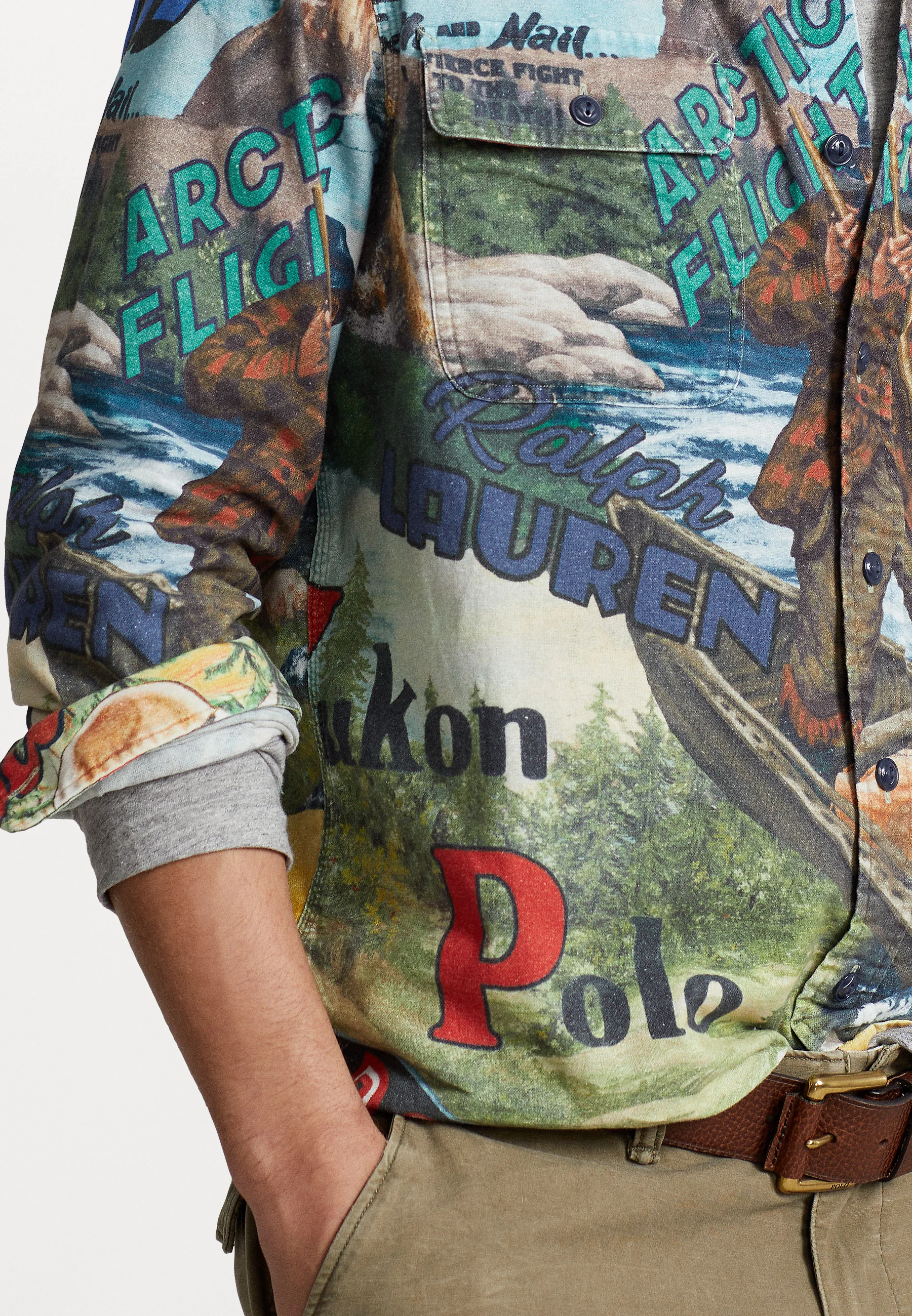 Sumérgete en la sofisticación intrépida con la camisa Polo Ralph Lauren Long Sleeve Sport "Expedition Poster". Esta prenda única, parte de una edición limitada, fusiona el inconfundible estilo Polo Ralph Lauren con un toque de aventura exclusiva.