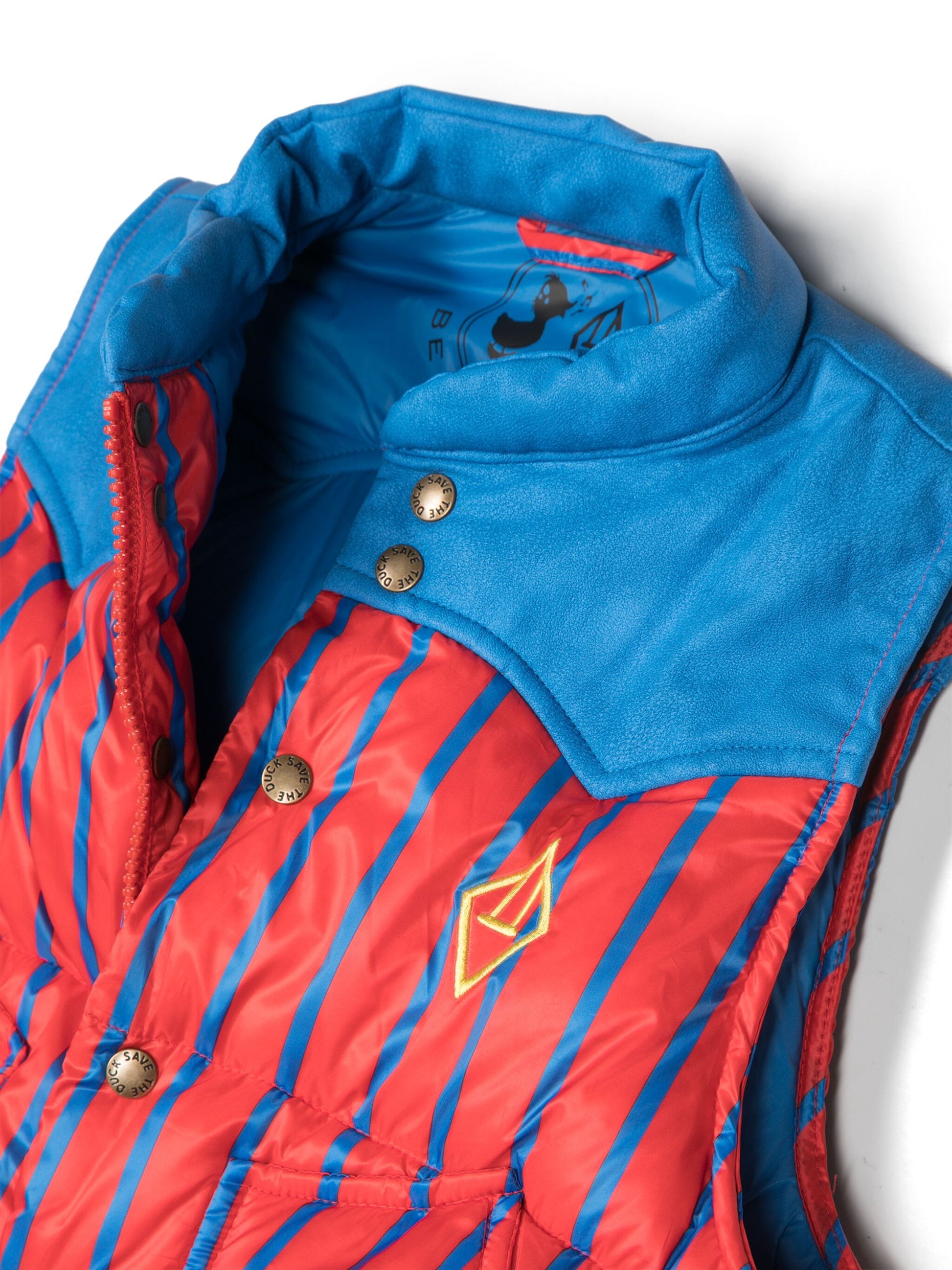 Explora la moda audaz y consciente con nuestro Chaleco Lemur sin mangas, parte de la colaboración entre Save the Duck y The Animals Observatory. Este chaleco en color rojo no solo te brinda calidez, sino que también es una obra de arte que exhibe un elegante estampado de rayas azules. Confeccionado con telas transpirables y respetuosas con el medio ambiente, este chaleco es una expresión del compromiso con la moda ética.